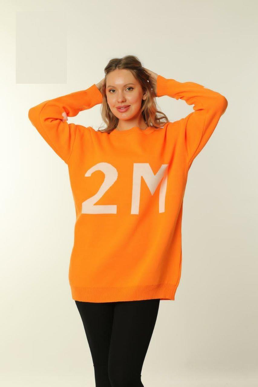 2M Yazılı Dökümlü Salaş Oversize Uzun Triko Kazak