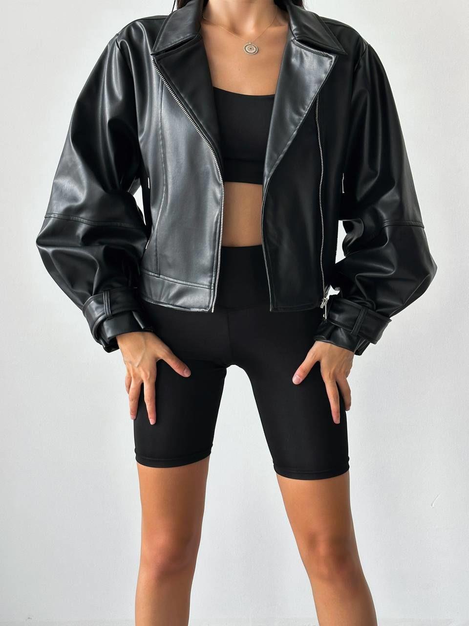 Balon Kol Fermuarlı Salaş Deri Ceket