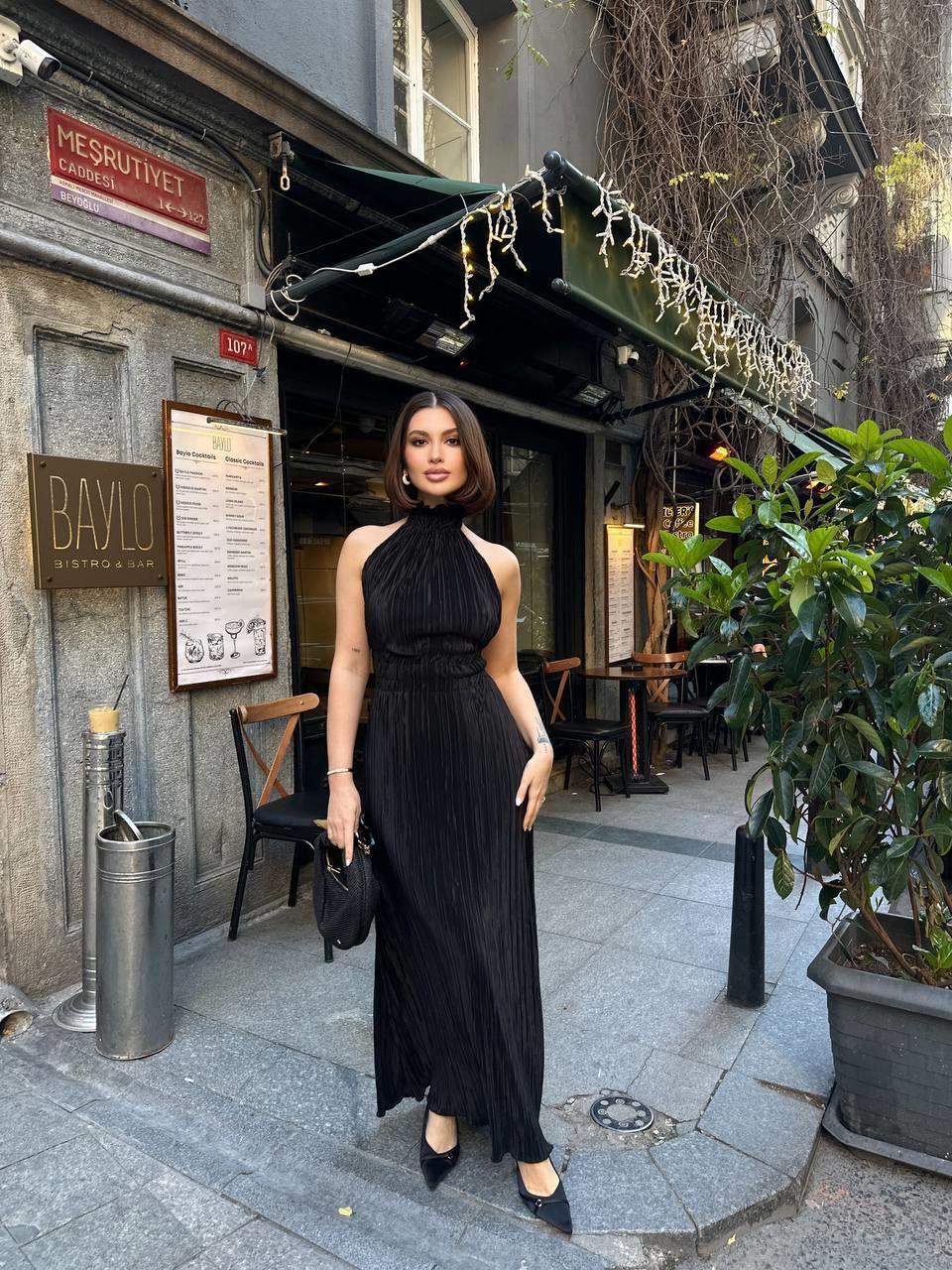 Boyundan Bağlamalı Sırtı Açık Uzun Elbise