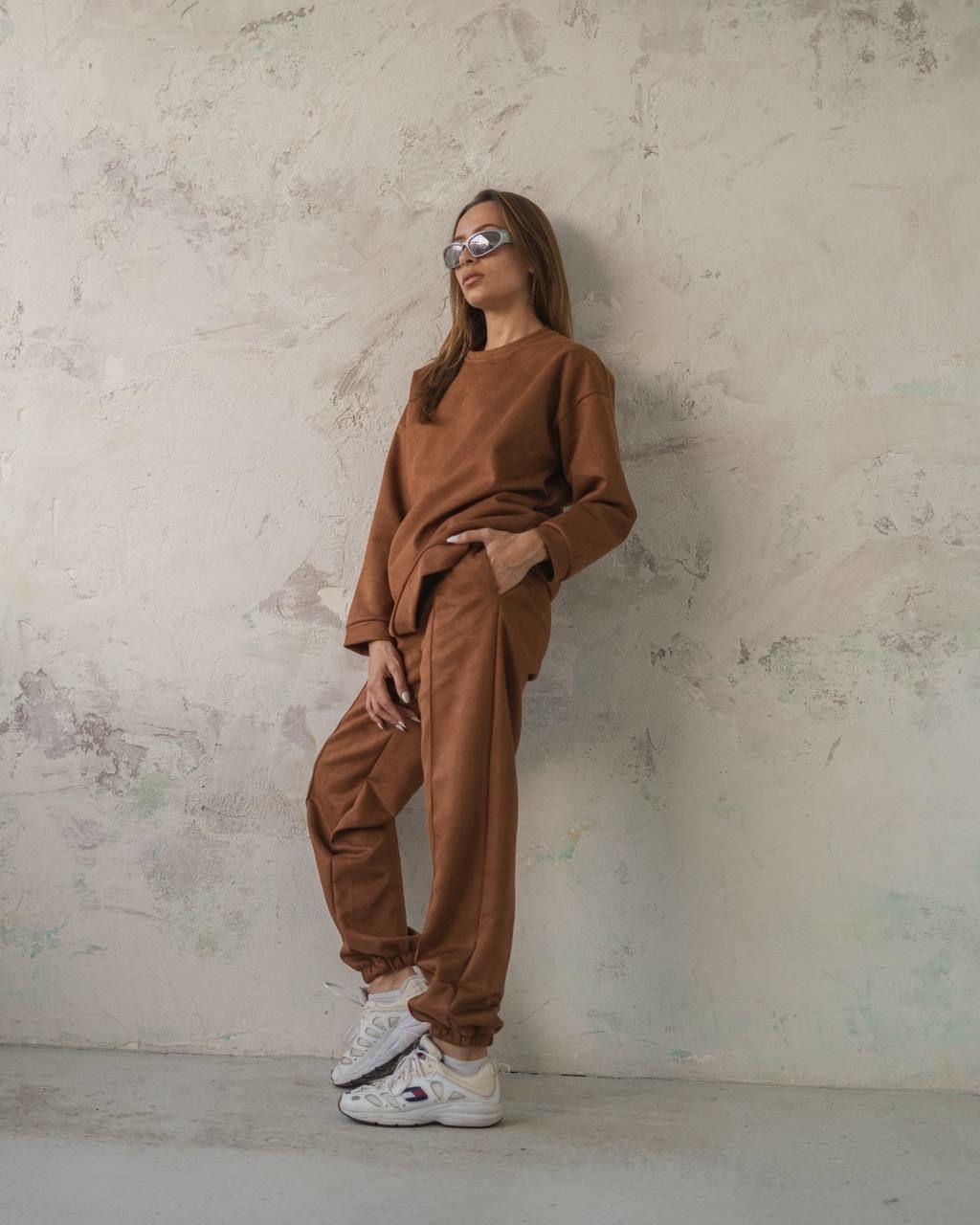 Çok Bol Oversize Bol Kesim Süet Sweat Pantolon ikili Takım