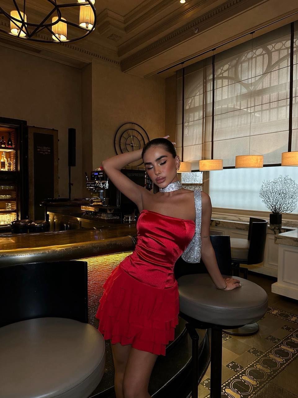 Eteği Kat Kat Straplez Sırtı Korseli Kadife Mini Elbise