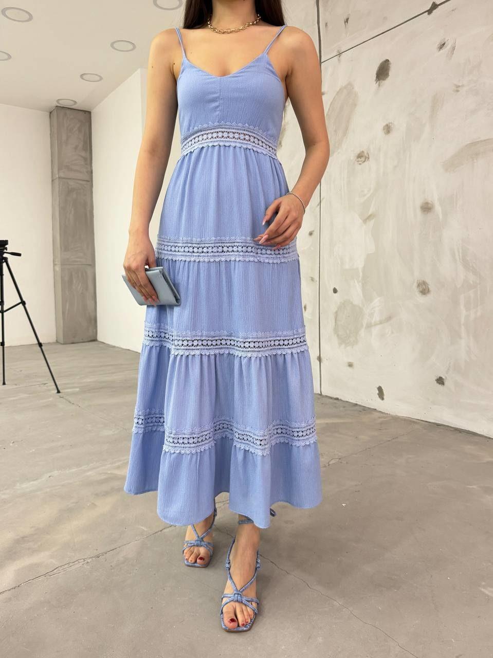 İp Askılı Astarlı Dantelli Rahat Kesim Maxi Güpür Elbise