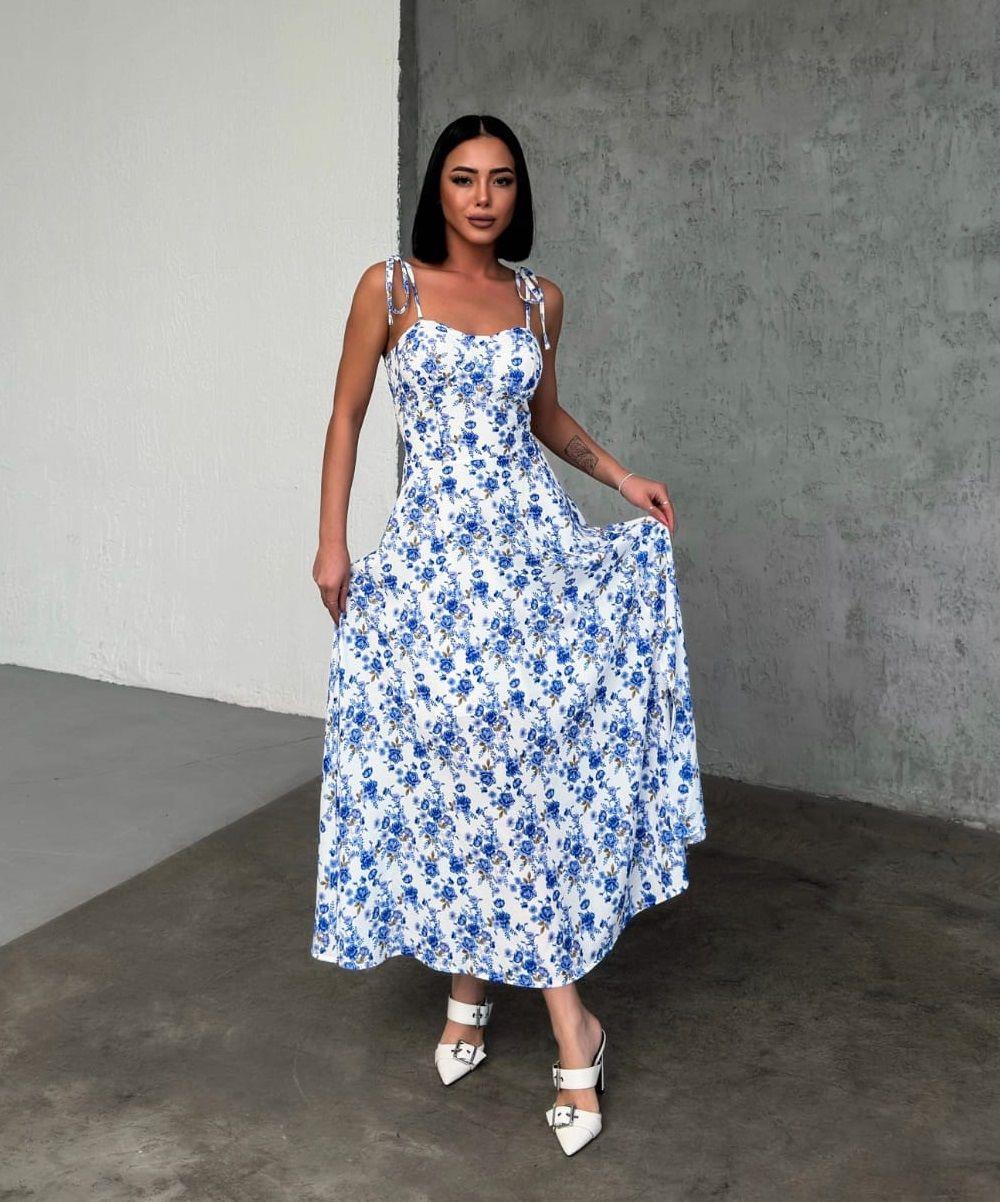 Ürün bağlamalı ip askılıdır. Boyunuza göre iplerden ayar verip bağlayabilirsiniz. Göğüs kısmı destekli glopludur. Arka kısmında gizli fermuarı bulunuyor. Önden yırtmaçlıdır. Kumaşı dijital baskılı krep kumaş. İçi dize kadar astarlıdır. Bu ürünün S M L bedenleri üretilmiştir. Askılar hariç göğüs kısmından eteğe kadarki boyu 120cm en olarak bel kısmının sadece önden ölçülmüş hali 35cm.
