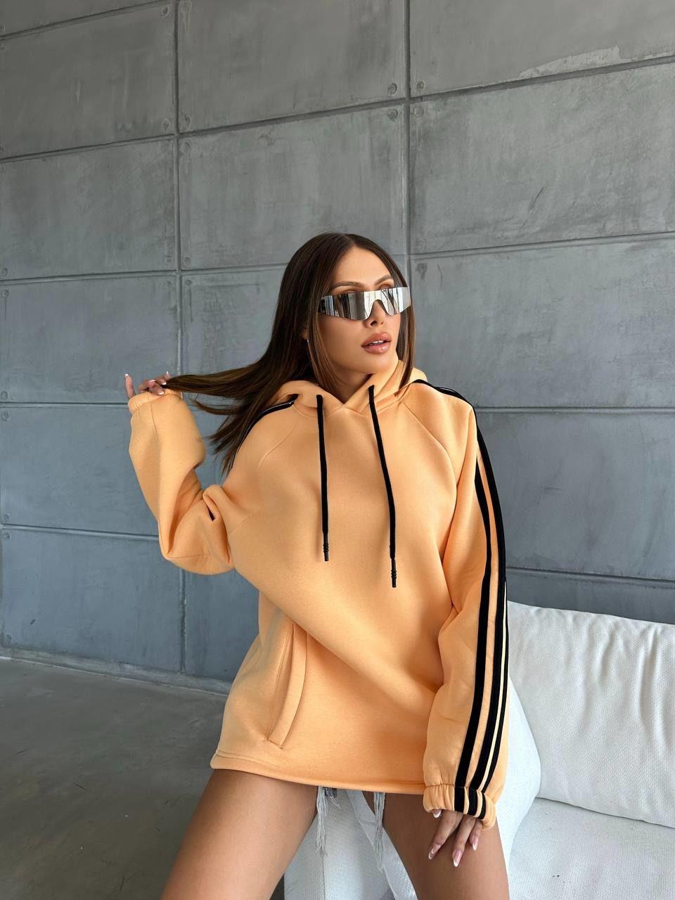 Kapüşonlu Şeritli Oversize Salaş Uzun Sweatshirt