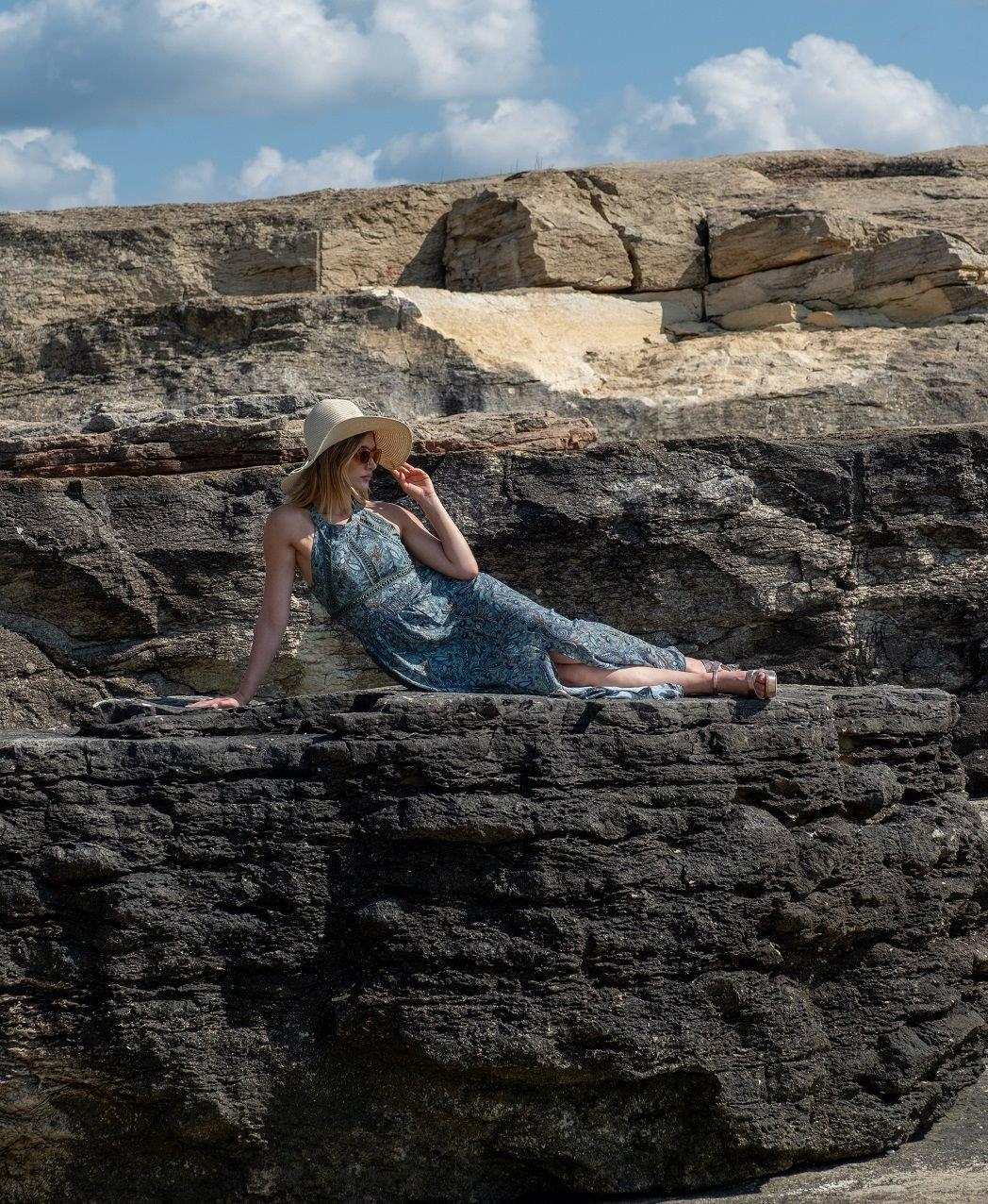 Elbise önden yırtmaçlı belden lastiklidir. Sırtı açık ve bağlama detaylıdır. Yine boyun kısmından çift düğme kapamalıdır. Bel bölgesindeki etek kısmılastiklidir, giyince beli sarıyor. Göğüs kısmında ekstra astar bulunuyor. Ayrıca içinde mini astar var. Kumaşı şal desenli polyerser kumaş. Bu ürünün S M L bedenleri üretilmiştir. Elbise boyu boyun kısmından aşağı 135cm